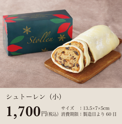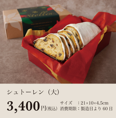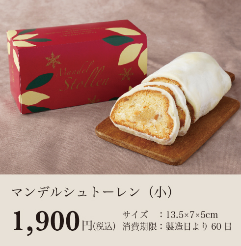 ■販売価格/シュトーレン(大)3,400円、シュトーレン(小)1,700円、マンデルシュトーレン(小)1,900円